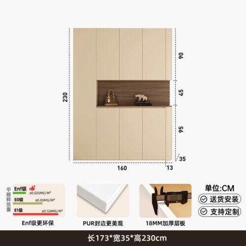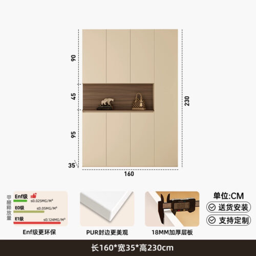 櫃體可選塑合板/夾板/木芯板/LSB板/實木板,櫃門可選塑合板/PET膚感板